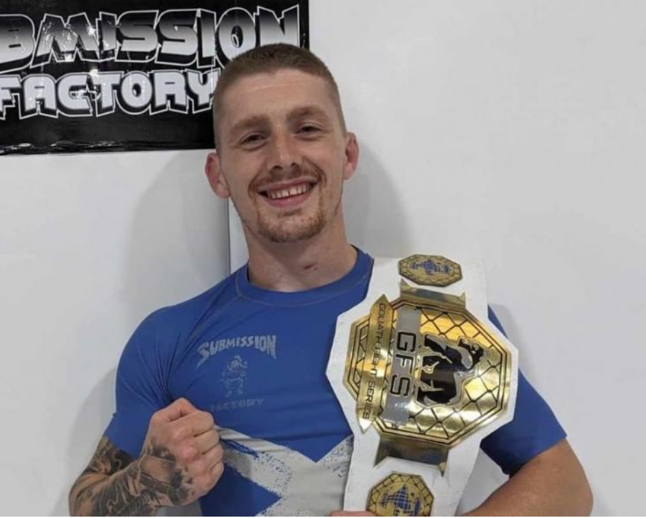 Shaun Conway, hailing from Alloa, has been a dedicated member of the Submission Factory for over four years. His unwavering commitment and relentless training paid off when he secured the Goliath Fight Promotions Scottish Title.